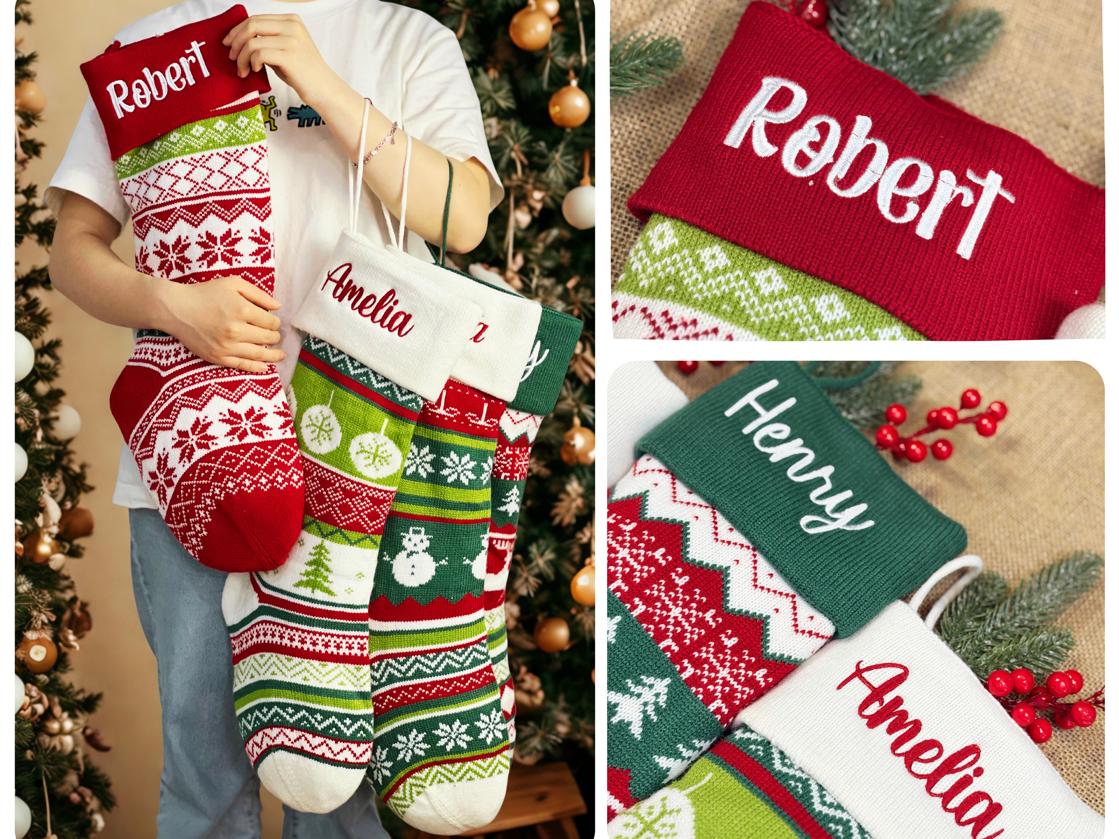 Celebrate the holiday season with our Custom Christmas Stockings – a cozy and heartfelt addition to your festive décor! Each stocking is beautifully knitted and embroidered with a name, making it the perfect keepsake for every family member.