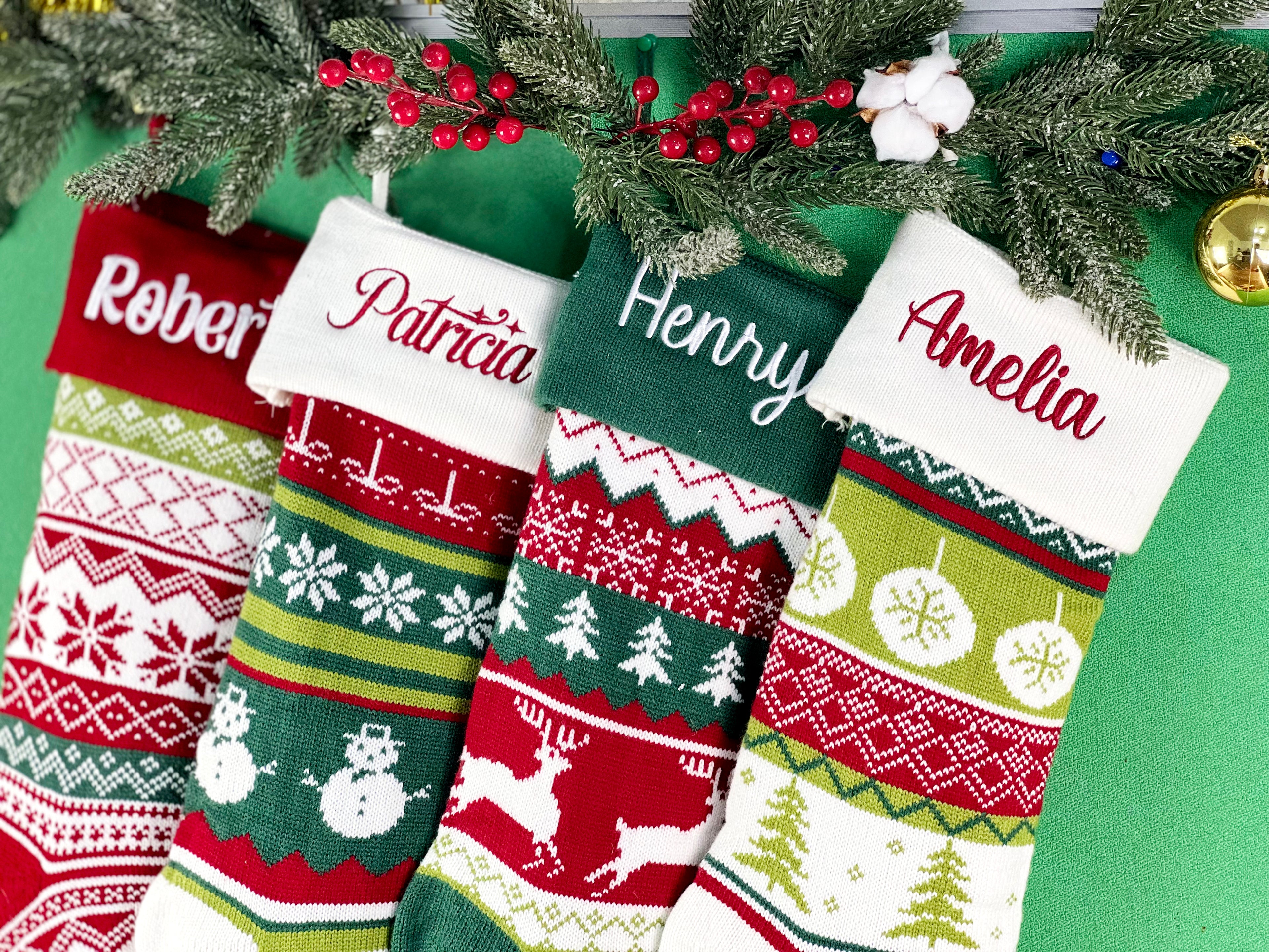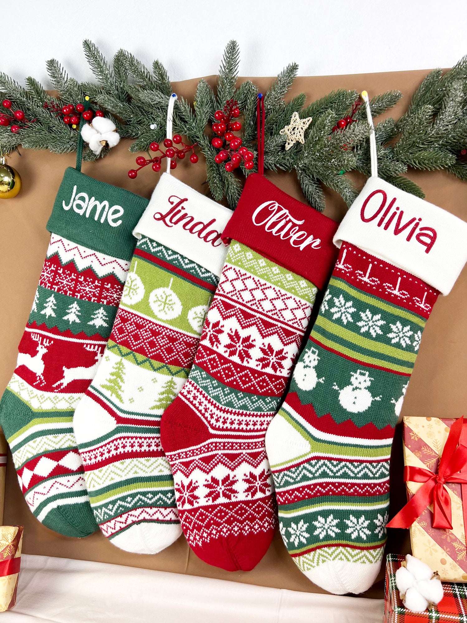 - Whether you're looking for Family Christmas Gifts, a special touch for your mantel, or Christmas Stockings With Names Embroidered, these Personalized Knitted Christmas Stockings make the holiday season magical.